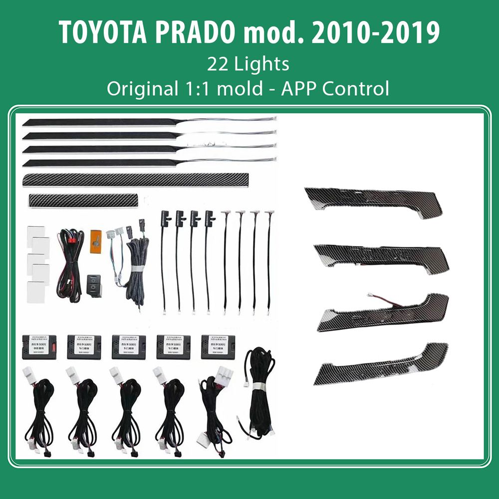 - 22 lights (4 door carbon handle lights, 4 door handle lights, 4 door contour lights, 4 door storage box lights, 4 footwell lights, and 2 center console lights)