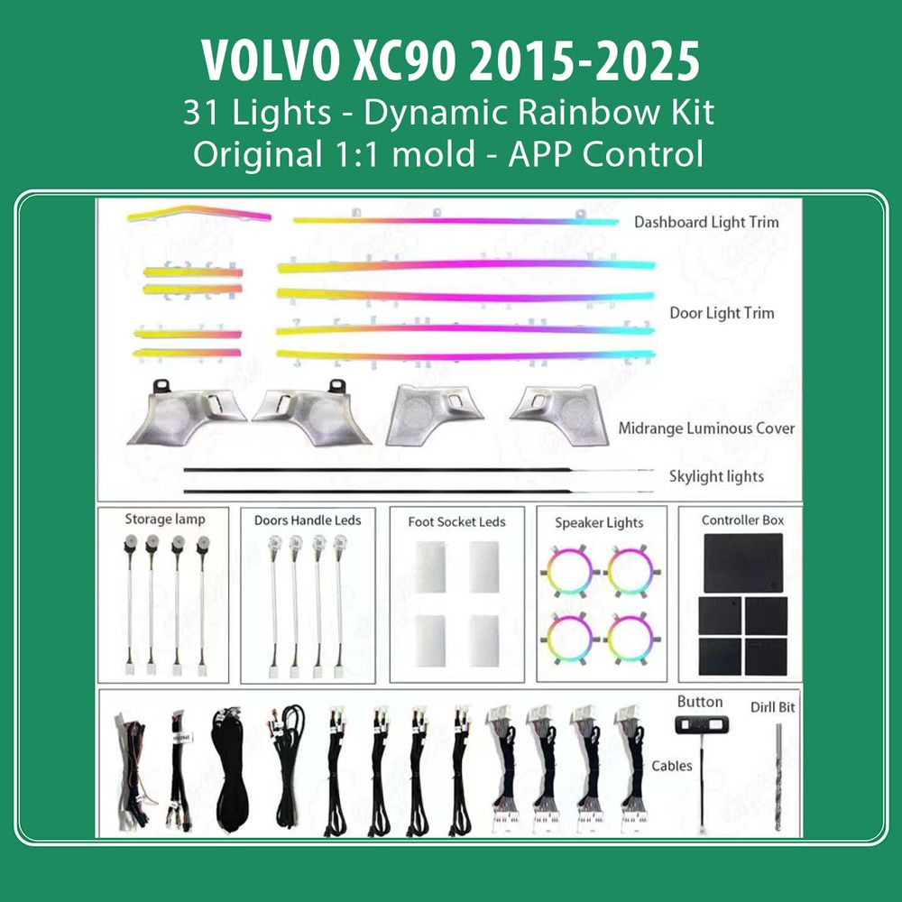 - 31 Lights (8 door trim lights, 2 main dashboard lights, 2 sunroof lights, 4 luminous midrange speakers covres, 4 door handle lights, 4 foot lights, 4 storage lights, 4 speaker lights).
