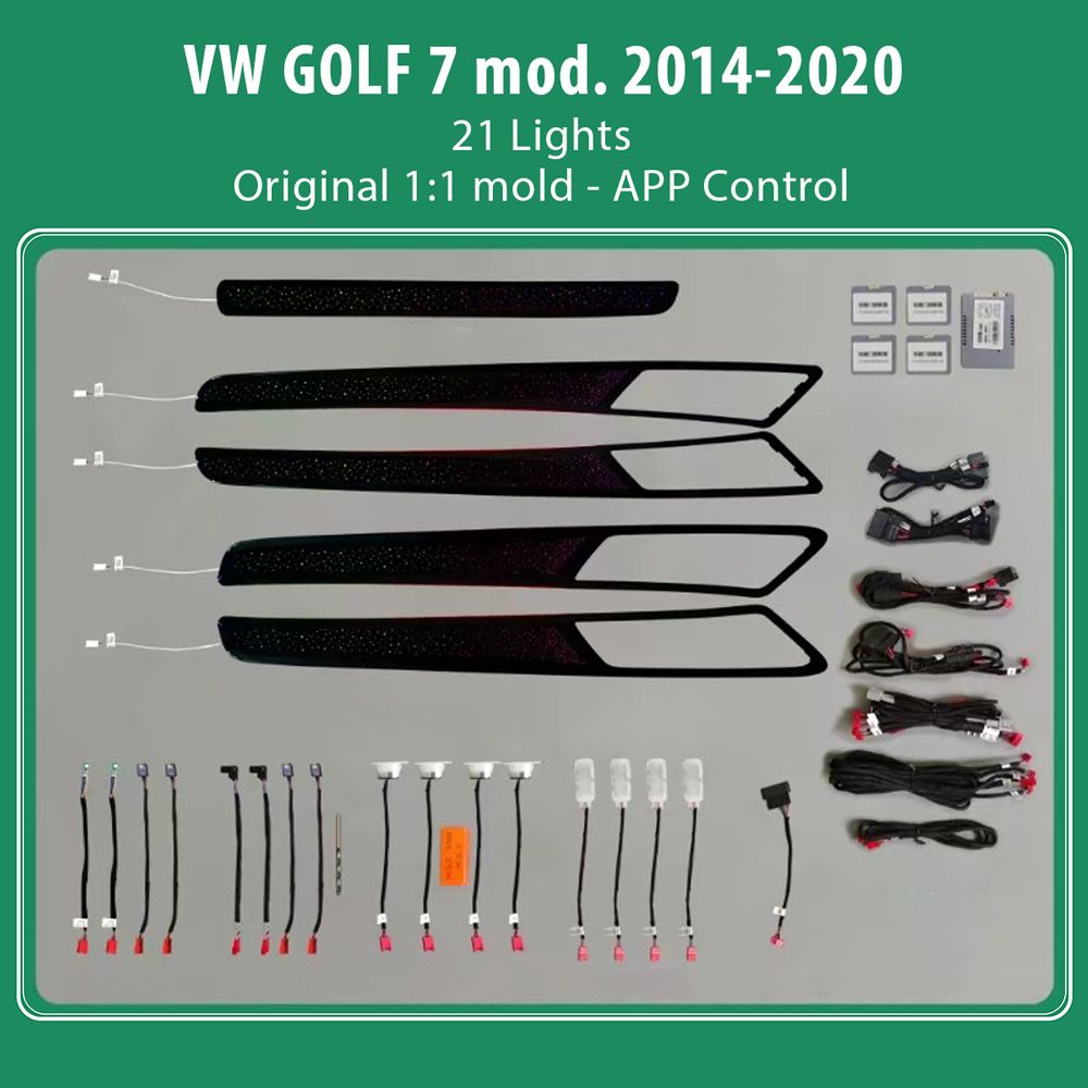 - 21 lights (4 door handle lights, 4 door outline lights, 4 door storage box lights, 4 footwell lights, 4 center armrest, 1 central co-driver)