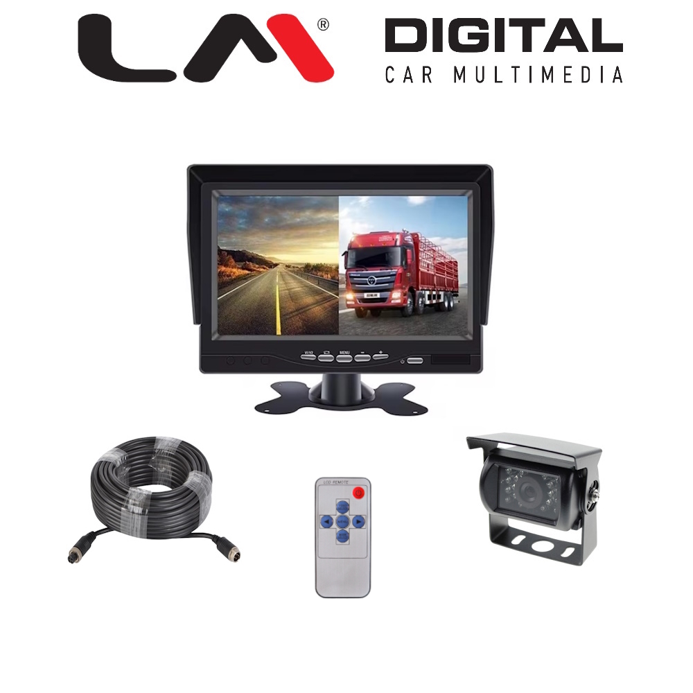 Μονιτορ και DVR 7 inch με διαχωρισμο για ταυτοχρονη θεαση 2 καμερών , 12/24V, αναλυση 1024x600 . Περιλαμβανεται 1 κάμερα NTSC , AHD 1080p - 25fps 170o, IP67. Περιεχει και DVR καταγραφικο, με θεση SD Card εως 256GB (δεν περιλαμβανεται)
