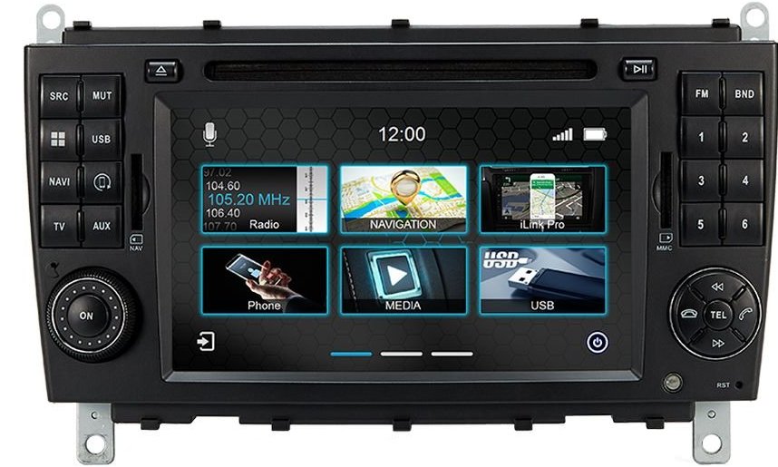 Ειδικά σχεδιασμένη οθόνη για Mercedes-Benz: Mercedes C-Class W203 2005-2007 Mercedes CLC-Class W203 2008-2011 Mercedes CL203 2004-2011 Διατήρηση λειτουργίας χειριστηρίων τιμονιού Διατήρηση οθόνης πολλαπλών λειτουργιών (MFD+) Εικονική «γραμμή» στάθμευσης Συγχρονισμός ρολογιού Υποστήριξη εργοστασιακού ηχοσυστήματος Harman/Kardon (απαιτείται N7-MOST)
