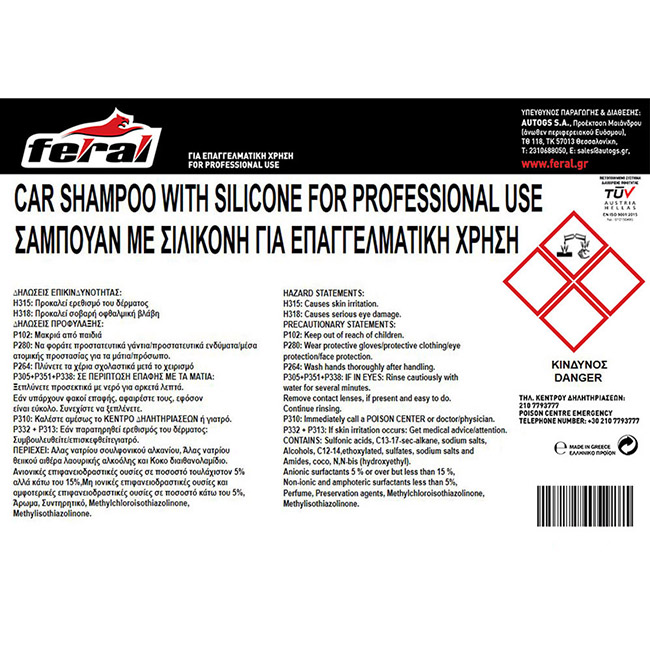 Σαμπουάν Αυτοκινήτου Με Σιλικόνη Feral 10lt 1 Τεμάχιο ×
