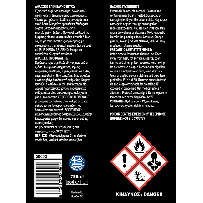 Δοχείο υπό πίεση. Προφυλάξτε το δοχείο από τον ήλιο και από θερμοκρασία πάνω από 50ºC