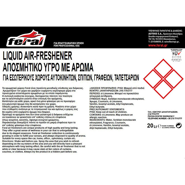 Αρωματικό Αυτοκινήτου Επαγγελματική Συσκευασία Feral Classic Collection Water 20lt 1Τεμάχιο