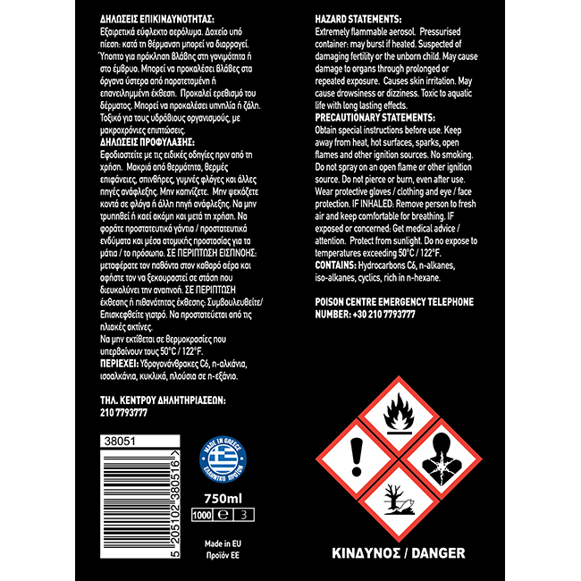 Δοχείο υπό πίεση. Προφυλάξτε το δοχείο από τον ήλιο και από θερμοκρασία πάνω από 50ºC