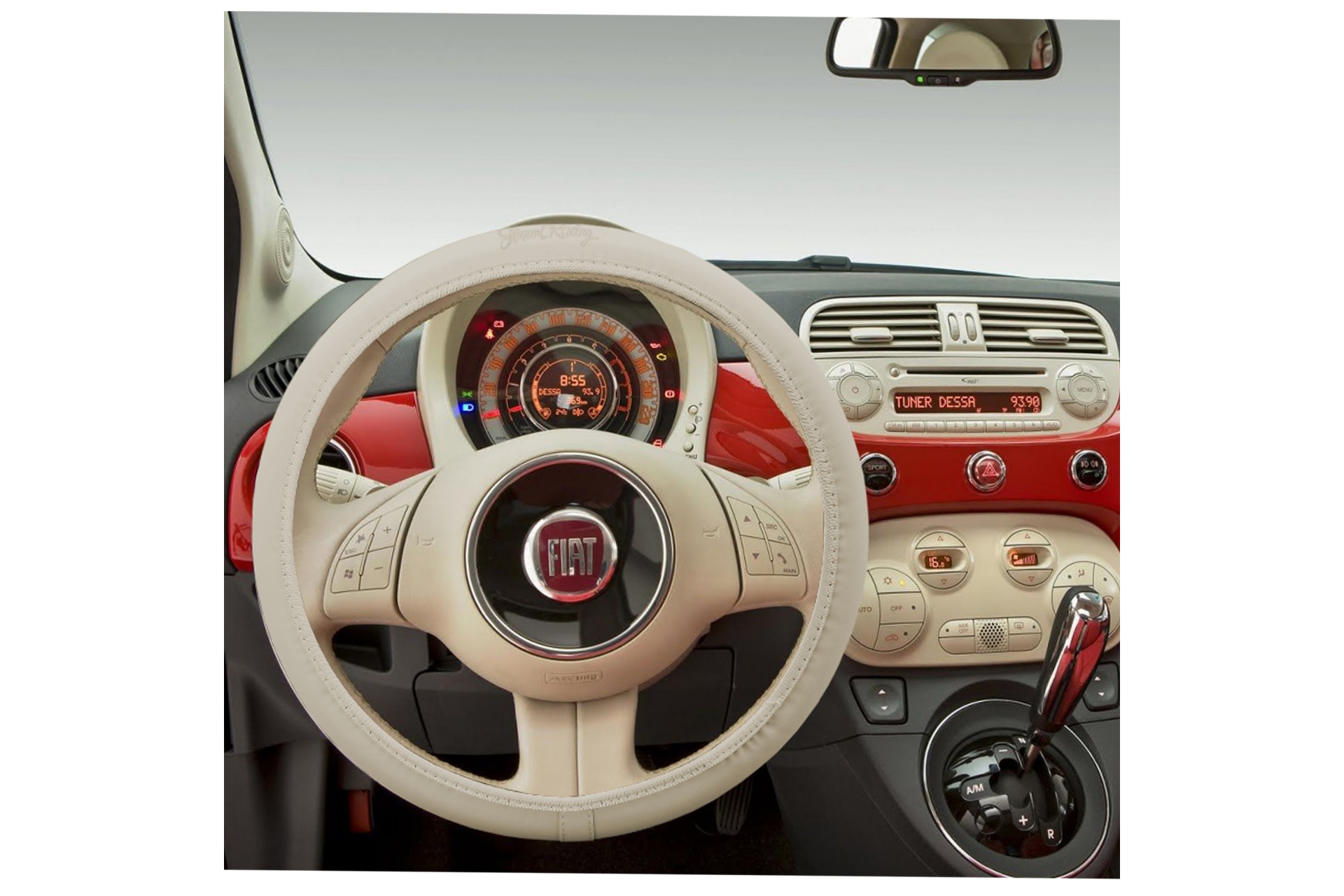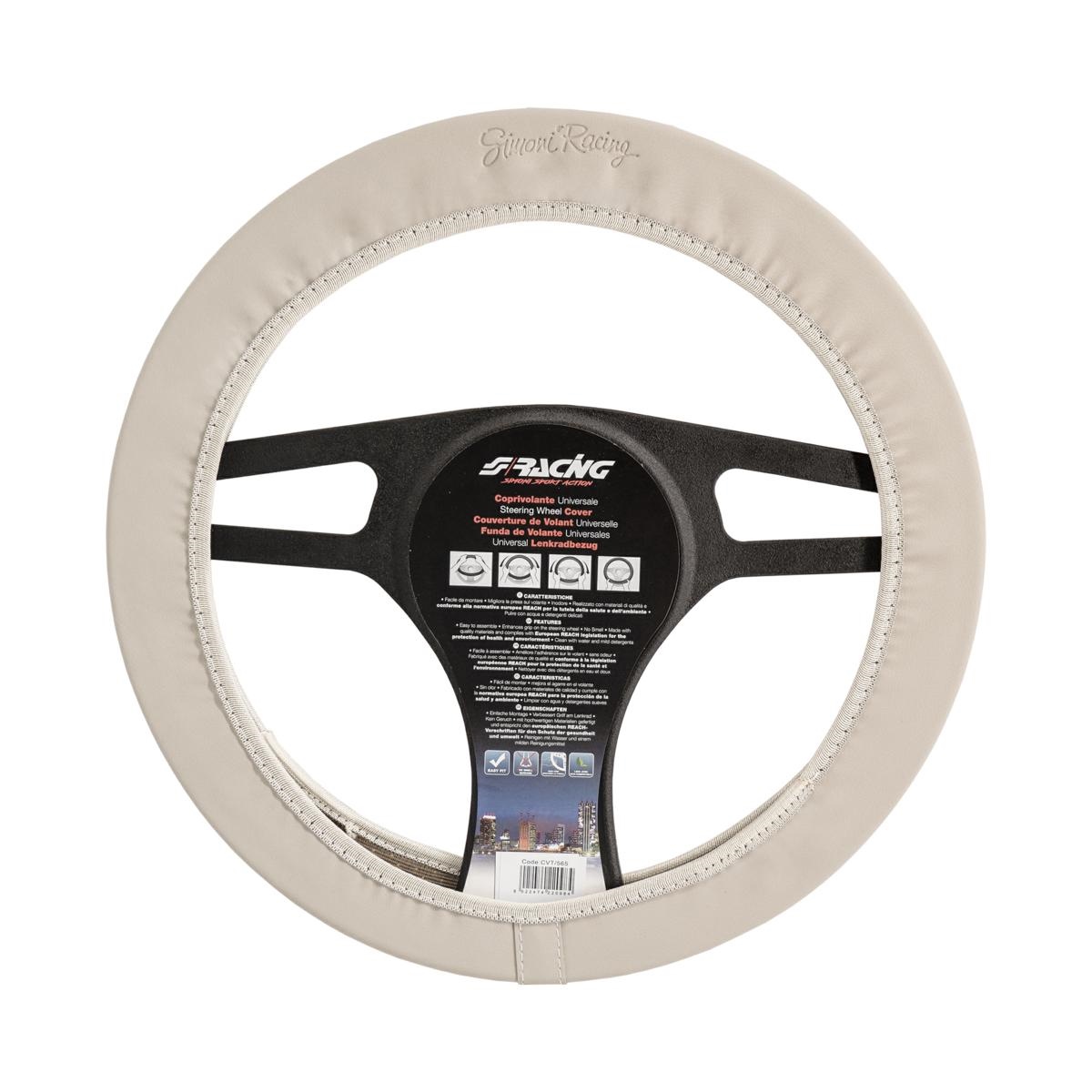 FIAT 500 ΚΑΛΥΜΜΑ ΤΙΜΟΝΙΟΥ ΜΠΕΖ ΜΑΡΚΕ ΟΙΚΟΛΟΓΙΚΟ ΔΕΡΜΑ & ΒΑΜΒΑΚΕΡΟ ΜΕ LOGO SIMONI RACING 37-39cm SIMONI RACING - 1 τεμ.