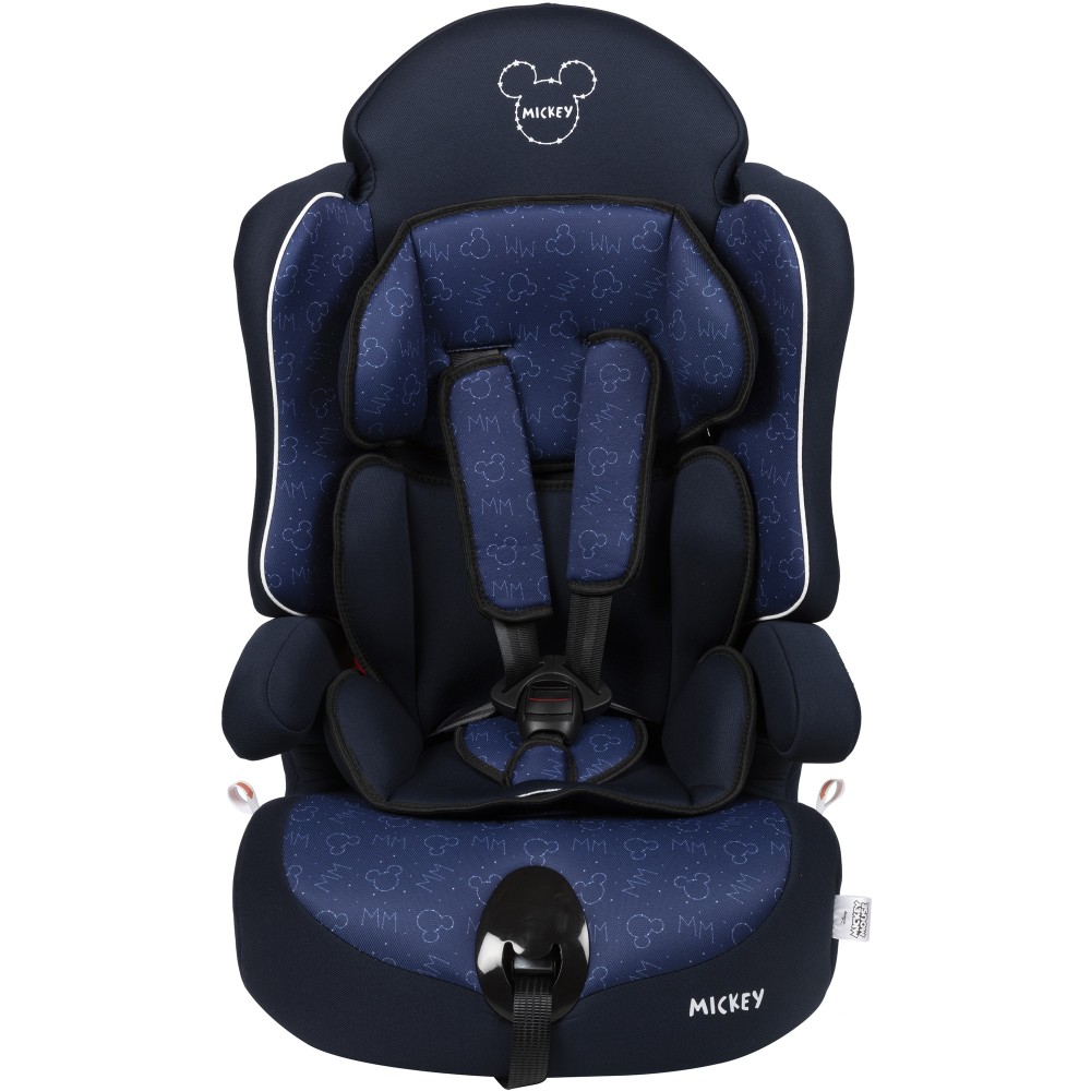 Η πλάτη του καθίσματος Mickey είναι κατασκευασμένη με ορθοπεδικό σχήμα που εξασφαλίζει την καλύτερη προστασία και άνεση κατά τη διάρκεια ενός ταξιδιού με αυτοκίνητο. Το κάθισμα έχει διπλή επένδυση, πάχους 1cm για σούπερ άνεση, με ρυθμιζόμενες ζώνες 5 σημείων. Το σύστημα ασφάλισης είναι γενικό και κατάλληλο για όλα τα αυτοκίνητα, εξοπλισμένο με ζώνες ασφαλείας 3 σημείων. Αφαιρώντας την πλάτη γίνεται ενισχυτικό κάθισμα αυτοκινήτου.