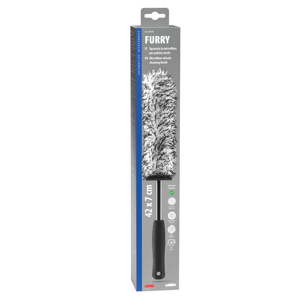 ΒΟΥΡΤΣΑ ΠΛΥΣΙΜΑΤΟΣ FURRY ΓΙΑ ΖΑΝΤΕΣ / ΤΑΣΙΑ ΜΙΚΡΟΦΙΜΠΡΑ 42x7cm LAMPA - 1 ΤΕΜ. Βούρτσα πλυσίματος FURRY, από την εταιρεία LAMPA, ιταλικής προέλευσης. Βούρτσα κατασκευασμένη από στιβαρή αλλά μαλακή αντιχαρακτική μικροΐνα, σχεδιασμένη για τον καθαρισμό ζαντών. Φτάνει ακόμα και στα πιο δύσκολα μέρη. Ασφαλές για τους τροχούς σας. Ανθεκτικό στις χημικές ουσίες. Λαβή από πολυπροπυλένιο με αντιολισθητική λαβή. Συσκευασία 1 τεμαχίου.