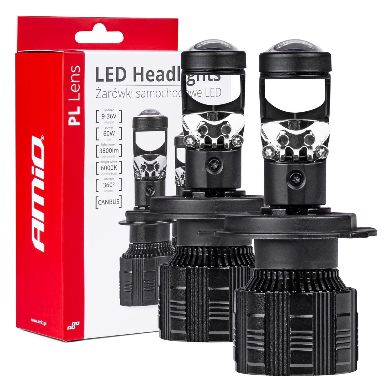 ΛΑΜΠΕΣ H4 PL-LENS SERIES 9>36V 60W 5.000K 3.800lm LED 2x4575 SMD CAN-BUS ΜΕ ΠΡΟΤΖΕΚΤΟΡΑ AMIO - 1 Τεμ.