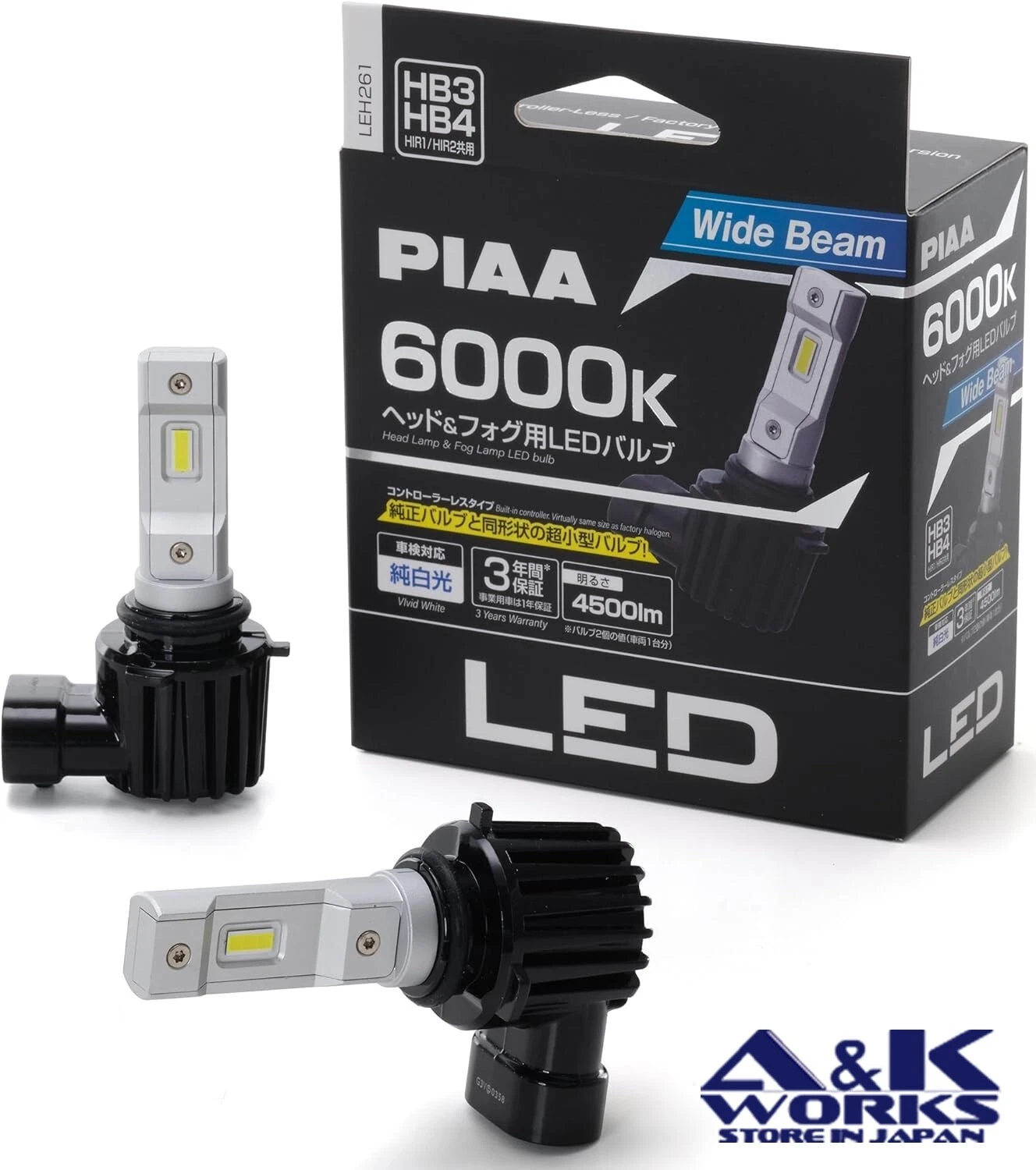 piaa LEH261 Headlight LED conversion bulb 6000K /17W per bulb 4500lm from 2 bulbsFor HB3/HB4/HIR1/HIR2 Halogen sockets
