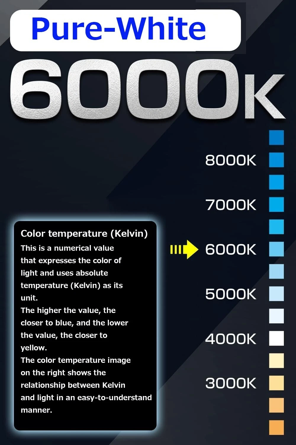 • **2. About Brightness (Σχετικά με τη Φωτεινότητα)** Η φωτεινότητα αυξάνεται στα **6.000 lm**. Διαθέτει εκθαμβωτική φωτεινότητα που υπερτερεί των συνηθισμένων γνήσιων λαμπτήρων αλογόνου.