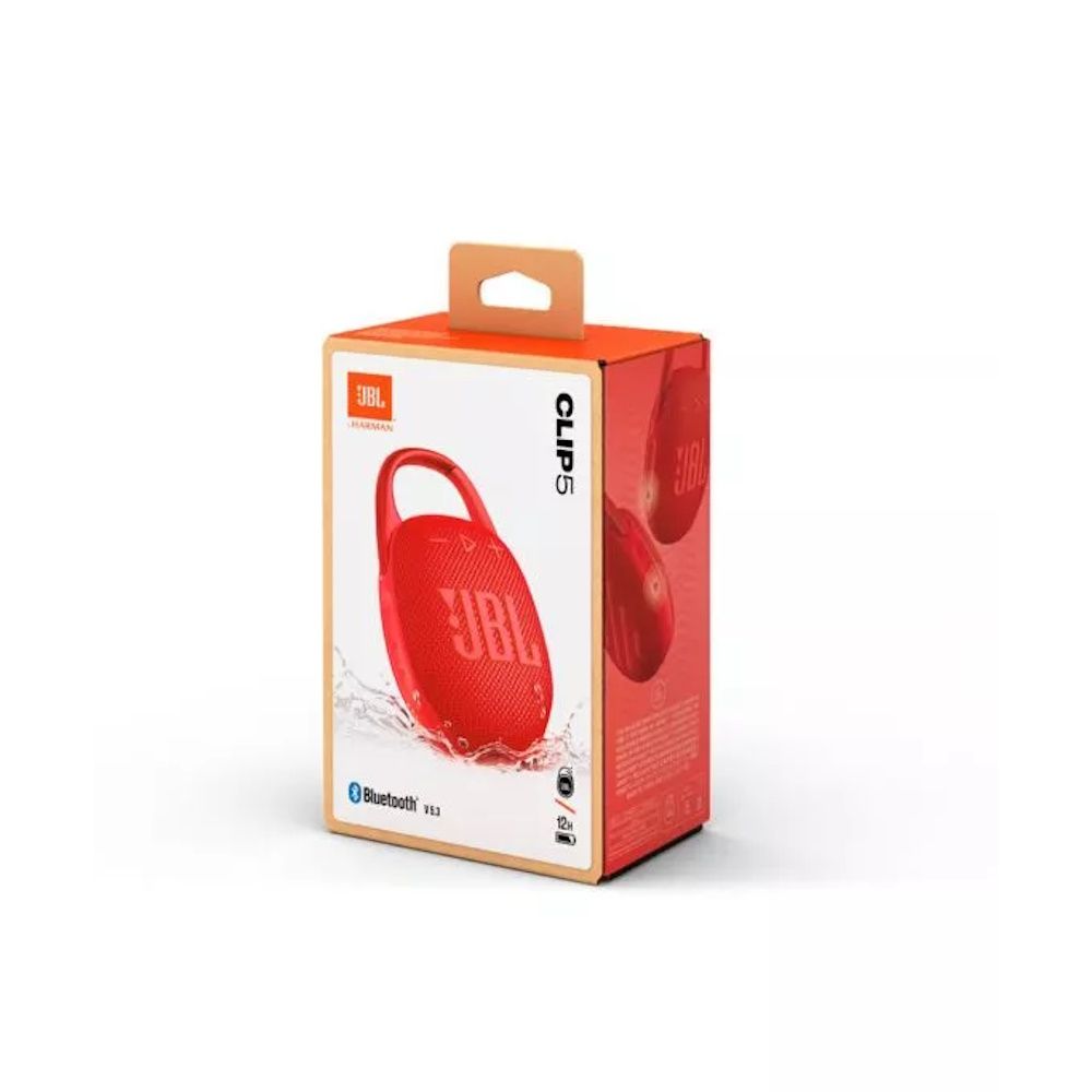 Clip and Play. Το ultra-φορητό Bluetooth ηχείο JBL Clip 5 είναι αρκετά μικρό για να το κρατάς στο χέρι, αλλά μην σε ξεγελάει το μέγεθός του—είναι μεγάλο εκεί που μετράει. Ένα πλατύ και πλήρως ενσωματωμένο καραμπίνερ είναι αρκετά μεγάλο για να το κουμπώσεις οπουδήποτε. Ο ισχυρός driver και παθητικός radiator παρέχουν μεγαλύτερο, δυνατότερο JBL Pro Sound και μπάσο. Η φόρτιση προσφέρει έως και 12 ώρες μπαταρίας—και ακόμα περισσότερη με ανοιχτό το Playtime Boost. Με δείκτη αδιαβροχοποίησης IP67, είναι τέλειο για πεζοπορία ή κάμπινγκ. Σύνδεσε δύο Clip 5 μαζί για στερεοφωνικό ήχο, ή αμέσως συνδέσου με πολλές συσκευές με JBL Auracast για ακόμα μεγαλύτερο ήχο και σε ακόμα περισσότερο χώρο. Επίσης, είναι διαθέσιμο σε μια ποικιλία χρωμάτων, ώστε να βρεις ακριβώς ποιο είναι κατάλληλο για το vibe σου. Κάθε μέρα είναι περιπέτεια με το JBL Clip 5.
