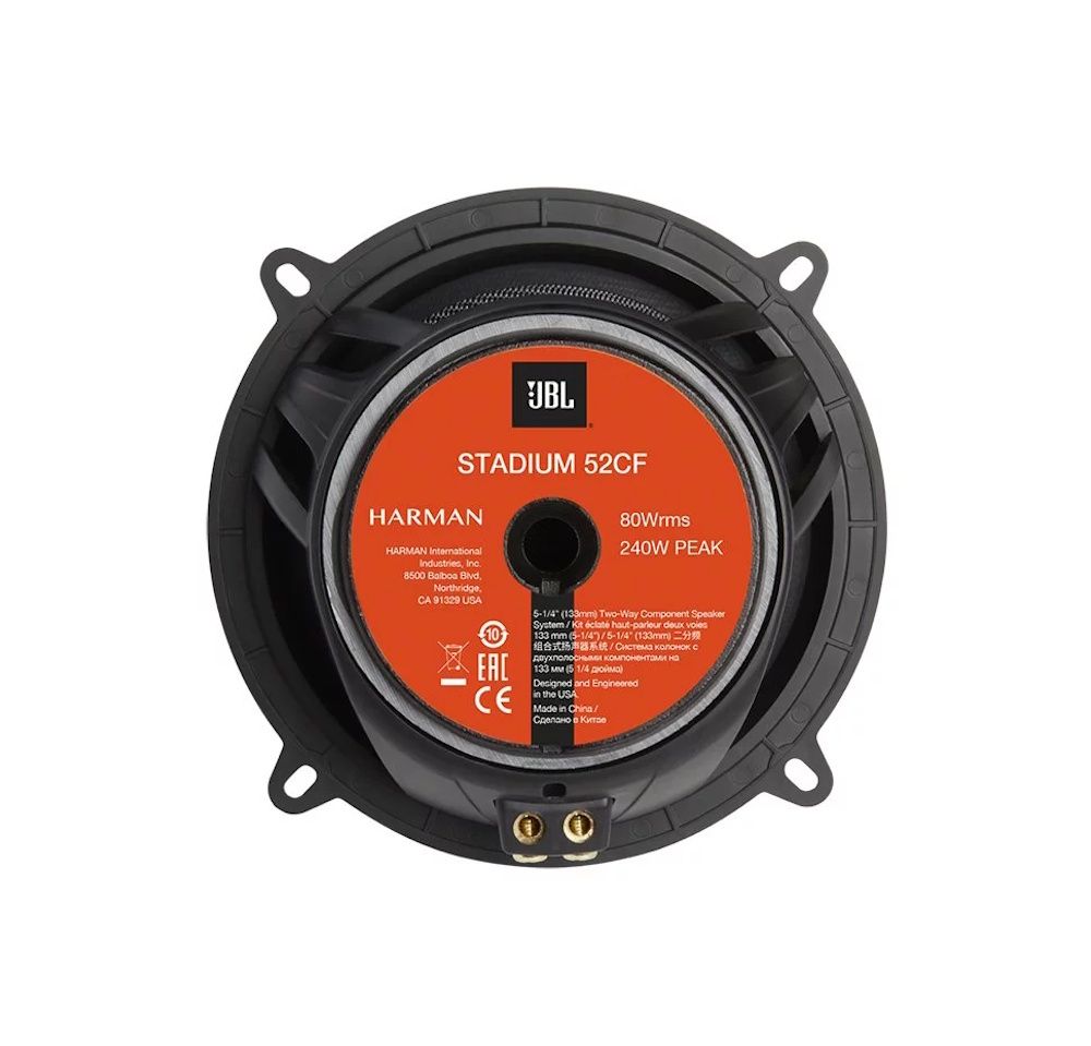 JBL’s Stadium Series speakers – available in 2″, 3″, 5-1/4″, 6-1/2″, 6″ x 8″, 4″ x 6″, 6″ x 9″, and 3/4″ – bring iconic JBL sound that can only come from a 75-year pedigree of audio excellence to virtually any car on the road. Stadium’s Plus One™ fiberglass woofers deliver high-output, deep and robust bass. The high-resolution 3/4″ edge-driven textile dome tweeters deliver soaring highs up to 40kHz. 2″ and 3″ midranges are available to upgrade two-way component systems into three-way. The compact 3″ midrange speakers also offer a perfect plug-and-play solution with low frequency response to 300Hz, and high sensitivity.General Specifications