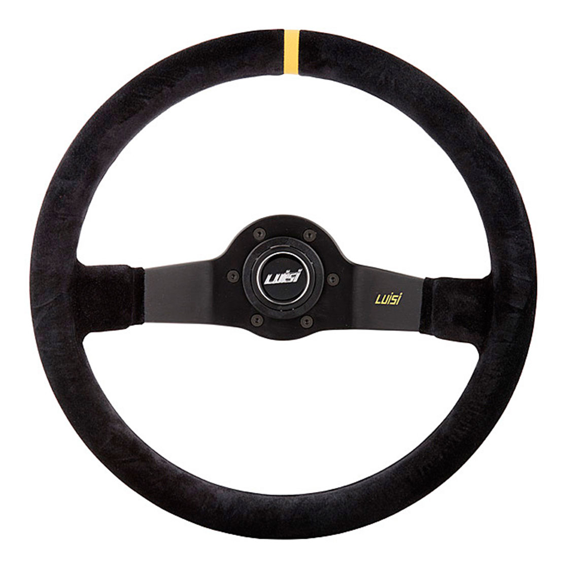 ΤΙΜΟΝΙ JET CORSA ΔΙΑΚΤΙΝΟ 350mm ΒΑΘΟΣ 95mm ΔΕΡΜΑΤΙΝΟ ΜΑΥΡΟ ΜΕ ΚΙΤΡΙΝΗ ΡΙΓΑ LUISI ×