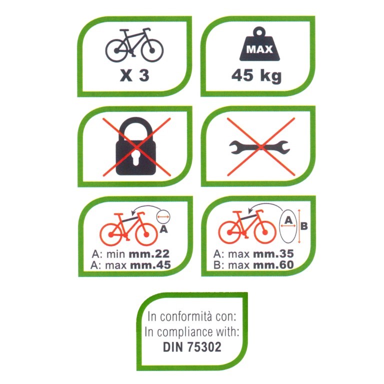 ΒΑΣΗ ΠΟΔΗΛΑΤΟΥ ΠΟΡΤ ΜΠΑΓΚΑΖ TRAVEL ΓΙΑ 3 ΠΟΔΗΛΑΤΑ (ΧΩΡΙΣ ΔΕΣΤΡΕΣ) ΓΙΑ 3D/4D/5D K39 Βάση Ποδηλάτου Πορτ Μπαγκάζ TRAVEL της K39, ιταλικής προέλευσης, για τη μεταφορά 3 ποδηλάτων. Διαθέτει απλούς ιμάντες δέσης και στήριξης των ποδηλάτων, ενσωματωμένους νάυλον ιμάντες δέσης και τοποθέτησης στο πορτ μπαγκάζ του αυτοκινήτου και ρυθμιζόμενο πλαίσιο με ροδέλες για καλύτερη εφαρμογή. Διαθέτει προστατευτικά μαξιλαράκια από μαλακό αντιολισθητικό λάστιχο σε όλα τα σημεία επαφής της για τη προστασία και την αποφυγή γρατζουνιών ή φθοράς. Πλήρως αναδιπλούμενη για να παραμένει κλειστεί και να μην περιορίζει την ορατότητα του οδηγού κατά τη μετακίνηση, όταν δεν είναι σε χρήση. Συμβατή με σκελετούς ποδηλάτου, οι οποίοι έχουν διάμετρο min: 22 mm. / max: 45 mm. (στρογγυλή σωλήνα) ή διάμετρο max: 35 mm. και ύψος διαμέτρου max: 60 mm. (οβάλ σωλήνα), καθώς επίσης και με τα περισσότερα μεγέθη ελαστικών. - Υλικό: Ατσάλι. - Χρώμα: Μαύρο. - Χωρητικότητα: 3 ποδήλατα. - Μέγιστο βάρος φορτίου: 45 kg. - Περιλαμβάνει: Ιμάντες για την στήριξη της στο αυτοκίνητο. - Γρήγορη τοποθέτηση, χωρίς να χρειάζονται τρυπήματα ή ειδικά εργαλεία. ΣΗΜΕΙΩΣΗ: Αυτό το αξεσουάρ έχει σχεδιαστεί, κατασκευαστεί και ελεγχθεί με προσοχή τηρώντας όλους τους ισχύοντες κανονισμούς ασφαλείας DIN 75302.