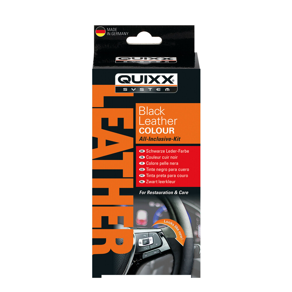 Το QUIXX Black Leather Colour είναι η ιδανική λύση για την ανανέωση δερμάτινων επιφανειών σατινέ υφής που έχουν επηρεαστεί από γρατζουνιές, τριβές ή ελαφρές αποχρωματίσεις.