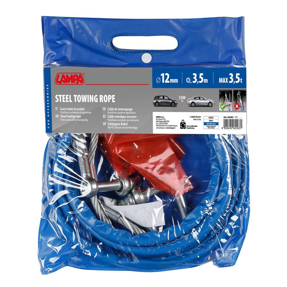 Lampa Ατσαλένιο Συρματόσχοινο Ρυμούλκησης Μήκος 3.5m Διάμετρος 12mm - Αντοχή 3.500kg 1τεμ (L6058.3)