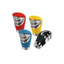 ΠΟΜΟΛΟ ΤΑΧΥΤΗΤΩΝ KROM ΜΑΥΡΟ /ΑΛΟΥΜΙΝΙΟ Πόμολο ταχυτήτων κατασκευασμένο από δερματίνη με λεπτομέρειες από χρωμιωμένο αλουμίνιο. Η συσκευασία περιλαμβάνει κιτ τοποθέτησης με αντάπτορες και άλεν κλειδί. Universal εφαρμογή, ταιριάζει στα περισσότερα αυτοκίνητα με απλό μοχλό ταχυτήτων με μέγιστη διάμετρο 15 mm αλλά και για μοχλό που διαθέτει επιλογέα ταχυτήτων με ανύψωση ή μετατόπιση (σηκωτή ή πατητή όπισθεν) και μέγιστη διάμετρο 30 mm. ΣΗΜΕΙΩΣΗ: Απόλυτα συμβατό και με Fiat/Opel αυτοκίνητα. - Χρώμα: Μαύρο και χρωμιωμένο αλουμίνιο. - Υλικό: Δερματίνη με λεπτομέρειες από αλουμίνιο. - Σχήμα: Στρογγυλό οβάλ. - Μέγιστη διάμετρος απλού μοχλού: 15 mm (max). - Μέγιστη διάμετρος μοχλού με επιλογέα: 30 mm (max). - Universal εφαρμογή. - Άνετη λαβή και εύκολος χειρισμός. - Κομψός σχεδιασμός και εμφάνιση. - Εύκολη και γρήγορη τοποθέτηση. Συσκευασία 1 τεμαχίου.