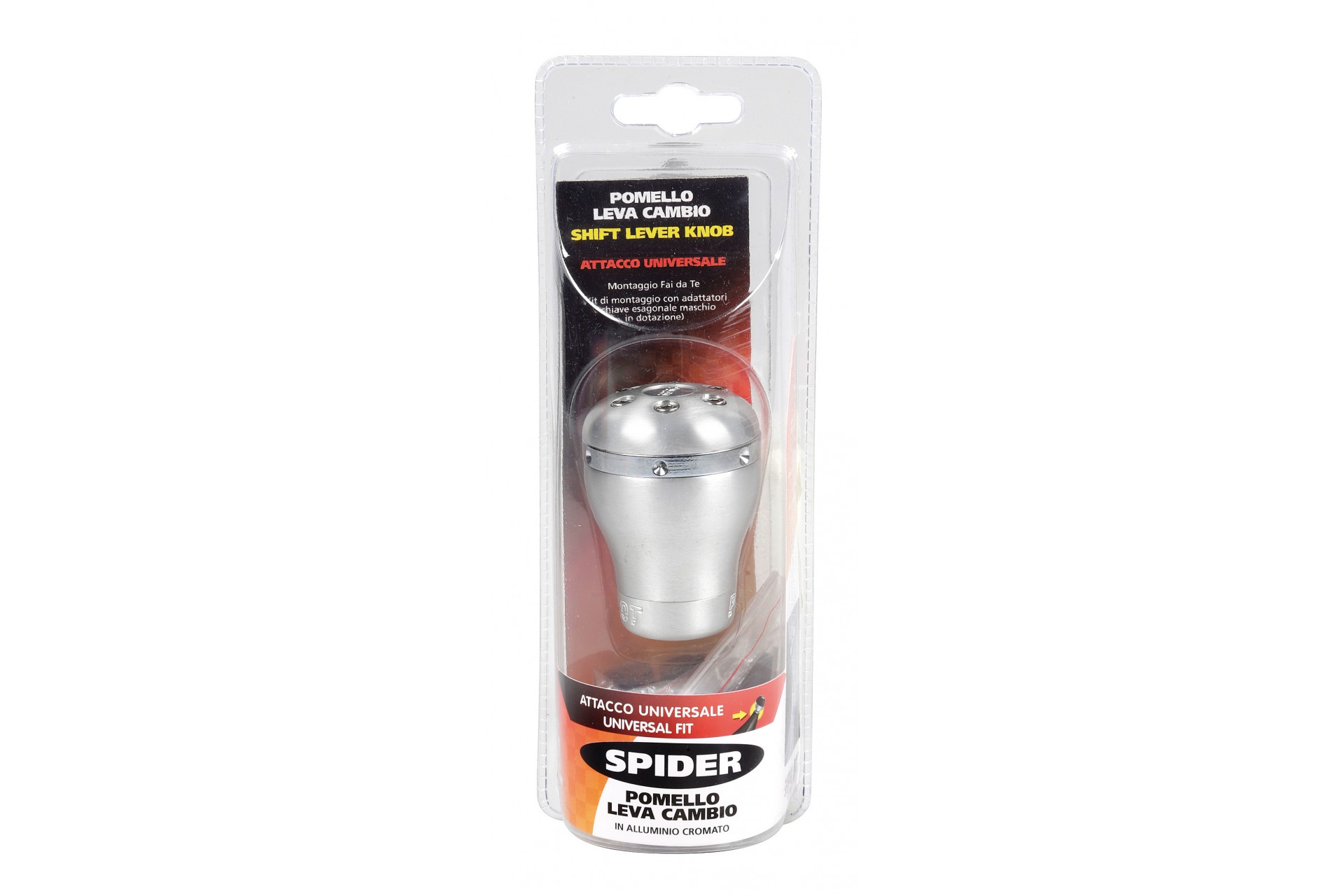 ΠΟΜΟΛΟ ΤΑΧΥΤΗΤΩΝ SPIDER ΧΡΩΜΙΟ /ΑΛΟΥΜΙΝΙΟ Πόμολο ταχυτήτων κατασκευασμένο από αλουμίνιο. Η συσκευασία περιλαμβάνει κιτ τοποθέτησης με αντάπτορες και άλεν κλειδί. Universal εφαρμογή, ταιριάζει στα περισσότερα αυτοκίνητα με απλό μοχλό ταχυτήτων με μέγιστη διάμετρο 15 mm αλλά και για μοχλό που διαθέτει επιλογέα ταχυτήτων με ανύψωση ή μετατόπιση (σηκωτή ή πατητή όπισθεν) και μέγιστη διάμετρο 33 mm. ΣΗΜΕΙΩΣΗ: Απόλυτα συμβατό και με Fiat/Opel αυτοκίνητα. - Χρώμα: Χρώμιο/ αλουμίνιο. - Υλικό: Αλουμίνιο. - Σχήμα: Στρογγυλό. - Μέγιστη διάμετρος απλού μοχλού: 15 mm (max). - Μέγιστη διάμετρος μοχλού με επιλογέα: 33 mm (max). - Universal εφαρμογή. - Άνετη λαβή και εύκολος χειρισμός. - Κομψός σχεδιασμός και εμφάνιση. - Εύκολη και γρήγορη τοποθέτηση. Συσκευασία 1 τεμαχίου.