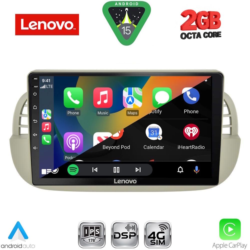 LENOVO LVF 5130BG_CPA (9inc) MULTIMEDIA TABLET for FIAT 500 mod. 2007-2015 (BEIGE)