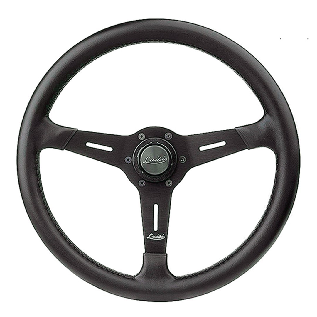 ΤΙΜΟΝΙ GRIFON LUISI ΤΡΙΑΚΤΙΝΟ 38 cm (ΜΑΥΡΟ/ΠΟΛΥΟΥΡΕΘΑΝΗ) - Διάμετρος τιμονιού: 38 cm (14.95''). - Χρώμα: Μαύρο. - Υλικό: Πολυουρεθάνη (πλαστικό) με μεταλλική λάμα. Τιμόνι αυτοκινήτου της σειράς VINTAGE από την εταιρία LUISI, ιταλικής προελεύσεως σε μαύρο χρώμα και ανθρακί χρωμιομένο διακοσμητικό καπάκι με logo στο κέντρο του, κατασκευασμένο από πολυουρεθάνη (πλαστικό) και μεταλλική μαύρη λάμα. Διαθέτει λαβή με λεία υφή και 3 μεταλλικές ακτίνες (μπράτσα) σε ίσια γραμμή. Έχει universal εφαρμογή, για να ταιριάζει στα περισσότερα μοντέλα αυτοκινήτων και προσφέρει ασφαλές, άνετο κράτημα, προσδίδοντας παράλληλα μία μοναδική κομψότητα στο εσωτερικό του οχήματος. Εύκολη και γρήγορη τοποθέτηση. ΣΗΜΕΙΩΣΗ: Για τη σωστή τοποθέτηση του τιμονιού στο αυτοκίνητο είναι απαραίτητη η χρήση κώνου (μαρκέ προϊόν - δεν συμπεριλαμβάνεται στη συσκευασία). Συσκευασία 1 τεμαχίου.