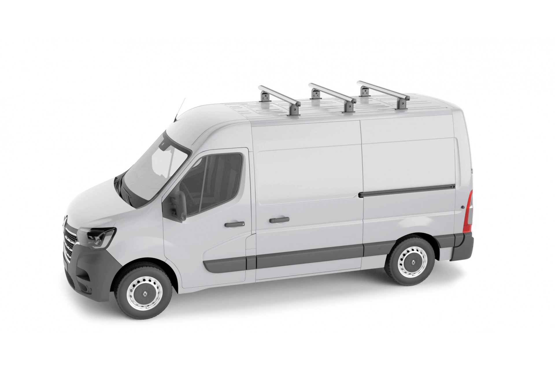 Πλήρες kit με μπάρες οροφής της εξελιγμένης αεροδυναμικής επαγγελματικής σειράς AIRDYN από την MENABO, 100% ιταλικής προέλευσης και κατασκευής. Από υψηλής ποιότητας ελαφρύ, ανθεκτικό αλουμίνιο, σε ασημί χρώμα και μεταλλικά πόδια, για μέγιστη αντοχή στον χρόνο, τις θερμοκρασίες και τα υψηλά φορτία. Κατάλληλες για χρήση σε συγκεκριμένα επαγγελματικά οχήματα και vans.