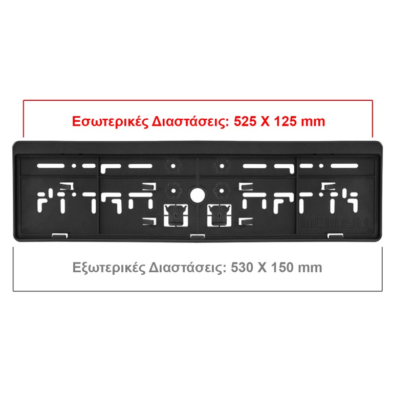 ΠΛΑΙΣΙΟ ΠΙΝΑΚΙΔΑΣ ΠΙΣΩ 52,5 Χ 12,5 cm MENABO (ΜΑΥΡΟ/ΠΛΑΣΤΙΚΟ) - 1 ΤΕΜ. Πλαίσιο πινακίδας, ιταλικής κατασκευής, για το πίσω μέρος του οχήματος και για τη τοποθέτηση πινακίδας κυκλοφορίας. Εφαρμόζεται κουμπωτά στον πίσω προφυλακτήρα του αυτοκινήτου, σε βάσεις ποδηλάτου με έτοιμη υποδοχή για πλαίσιο πινακίδας για τη σωστή ορατότητα, καθώς επίσης και σε τρέιλερ. - Εξωτερικές διαστάσεις: 53 Χ 15 cm. - Εσωτερικές διαστάσεις: 52,5 Χ 12,5 cm. - Χρώμα: Μαύρο. - Υλικό: Πλαστικό. - Χρήση στο πίσω μέρος του αυτοκινήτου. - Εύκολη και γρήγορη τοποθέτηση. Συσκευασία 1 τεμαχίου.