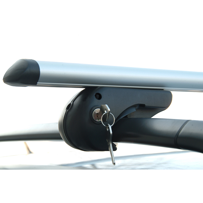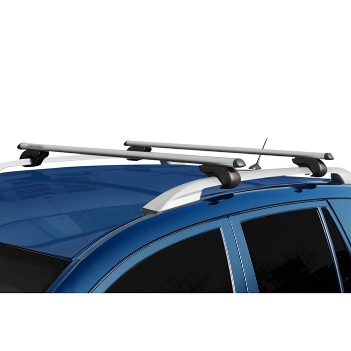Μπάρες οροφής κατασκευασμένες από αλουμίνιο με ενσωματωμένες κλειδαριές και υποδοχή T-track, προστατευμένη με ελαστικό αντιολισθητικό κάλυμμα κατά μήκος της.