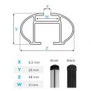 • Υποδοχή T-system στο άνω μέρος με ελαστικό, αντιολισθητικό κάλυμμα προστασίας κατά μήκος. Η εγκοπή σε σχήμα Τ είναι ένα σιρίτι, που μπορεί να δεχθεί συρταρωτά όλα τα επιπρόσθετα συμβατά εξαρτήματα, όπως π.χ. μπαγκαζιέρα, εξαρτήματα για στερέωση και ασφάλεια μεταφοράς φορτίου, βάση μεταφοράς ποδηλάτων ή σκι και snowboard ή canoe kayak, sup, κρίκους δεσίματος, κ.ά. με την χρήση συνδέσμου T-system 20 mm με κωδικό 11010/MB - οι σύνδεσμοι T δεν περιλαμβάνονται, πωλούνται ξεχωριστά.