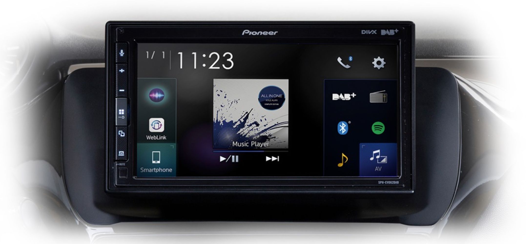 Αυτή η αρθρωτή συσκευή πολυμέσων με οθόνη αφής 6.8 ιντσών Clear Type προσφέρει εύκολη συνδεσιμότητα smartphone μέσω ενός απλού καλωδίου USB, υποστηρίζοντας **Apple CarPlay**, **Android Auto**, **WebLink**, **DAB/DAB+ Ψηφιακό Ραδιόφωνο**, **Waze**, **Bluetooth** και έναν **γραφικό ισοσταθμιστή 13 ζωνών (GEQ)**.