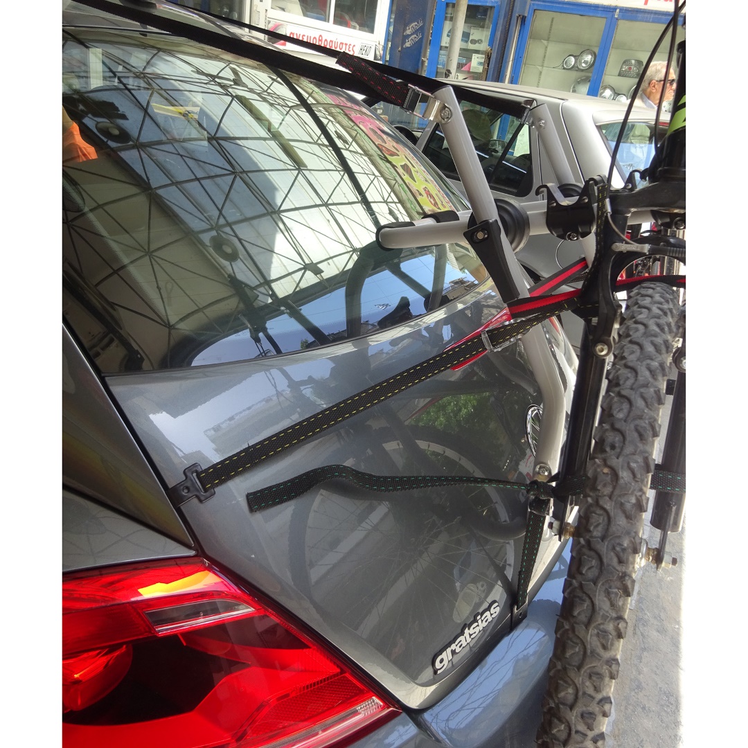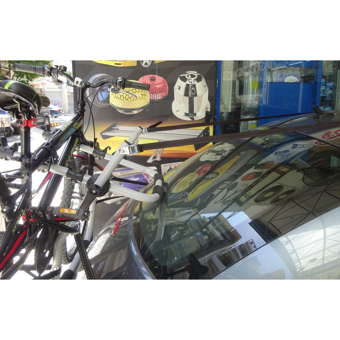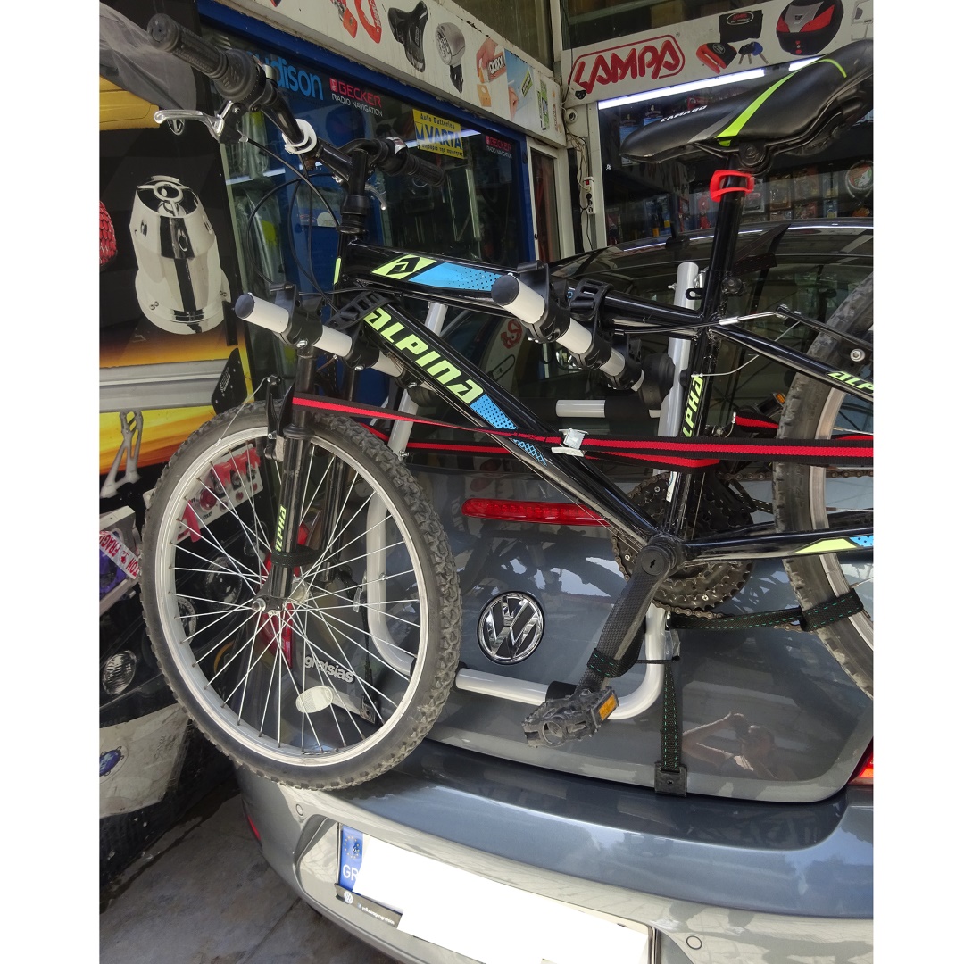 ΒΑΣΗ ΠΟΔΗΛΑΤΟΥ ΠΟΡΤ ΜΠΑΓΚΑΖ FOLLOW ME T3 ΓΙΑ 3 ΠΟΔΗΛΑΤΑ NORDRIVE Ασφαλής και αξιόπιστη βάση στήριξης και μεταφοράς Follow Me Τ3 έως 3 ποδήλατα, κατάλληλη για τοποθέτηση στο πορτ παγκάζ του αυτοκινήτου σας. Κατασκευασμένη από υψηλής ποιότητας και αντοχής υλικά, ιταλικής προέλευσης από την εταιρία Nordrive. Διαθέτει μεταλλικούς σωλήνες με διάμετρο 25 mm και ενσωματωμένες δέστρες ποδηλάτων (υποδοχές για την απευθείας δέση των σκελετών πάνω στην βάση, χωρίς την χρήση επιπλέον ιμαντα). Επιπρόσθετα, παρέχονται συνδέσεις με πλαστική επικάλυψη για την αποφυγή γρατζουνιών και εξαιρετικά ανθεκτικούς, ρυθμιζόμενους νάιλον προσαρμογείς για τη καλύτερη τοποθέτηση στο πορτ μπαγκάζ του οχήματος. Όλα τα σημεία της βάσης ποδηλάτου Follow Me Τ3 που έρχονται σε επαφή με το αμάξωμα του οχήματος είναι πλαστικοποιημένα με επένδυση από καουτσούκ για να προστατεύουν το όχημά σας από φθορές και γδαρσίματα. Κατάλληλη για τα περισσότερα ποδήλατα με τριγωνικό πλαίσιο. Γρήγορη και εύκολη συναρμολόγηση. Ιδανική για όλα τα πορτ παγκάζ των αυτοκινήτων (3d/4d (sedan)/ 5d (ΗΤΒ)). - Διάμετρος σωληνών: 25 mm. - Υλικό : Ατσάλι. - Χρώμα: Ασημί. - Μέγιστο βάρος φορτίου : 45 kg. - Χωρητικότητα: 3 ποδήλατα. - Περιλαμβάνει: 6 δέστρες, νάιλον προσαρμογείς (ιμάντες) για τοποθέτηση. ΣΗΜΕΙΩΣΗ: Τα μεταφερόμενα ποδήλατα δεν πρέπει να παρεμποδίζουν την ορατότητα των πινακίδων κυκλοφορίας ή των φώτων, ακόμη και μερικώς. Δείτε επίσης: ΟΔΗΓΙΕΣ ΧΡΗΣΗΣ/ΣΥΝΑΡΜΟΛΟΓΗΣΗΣ