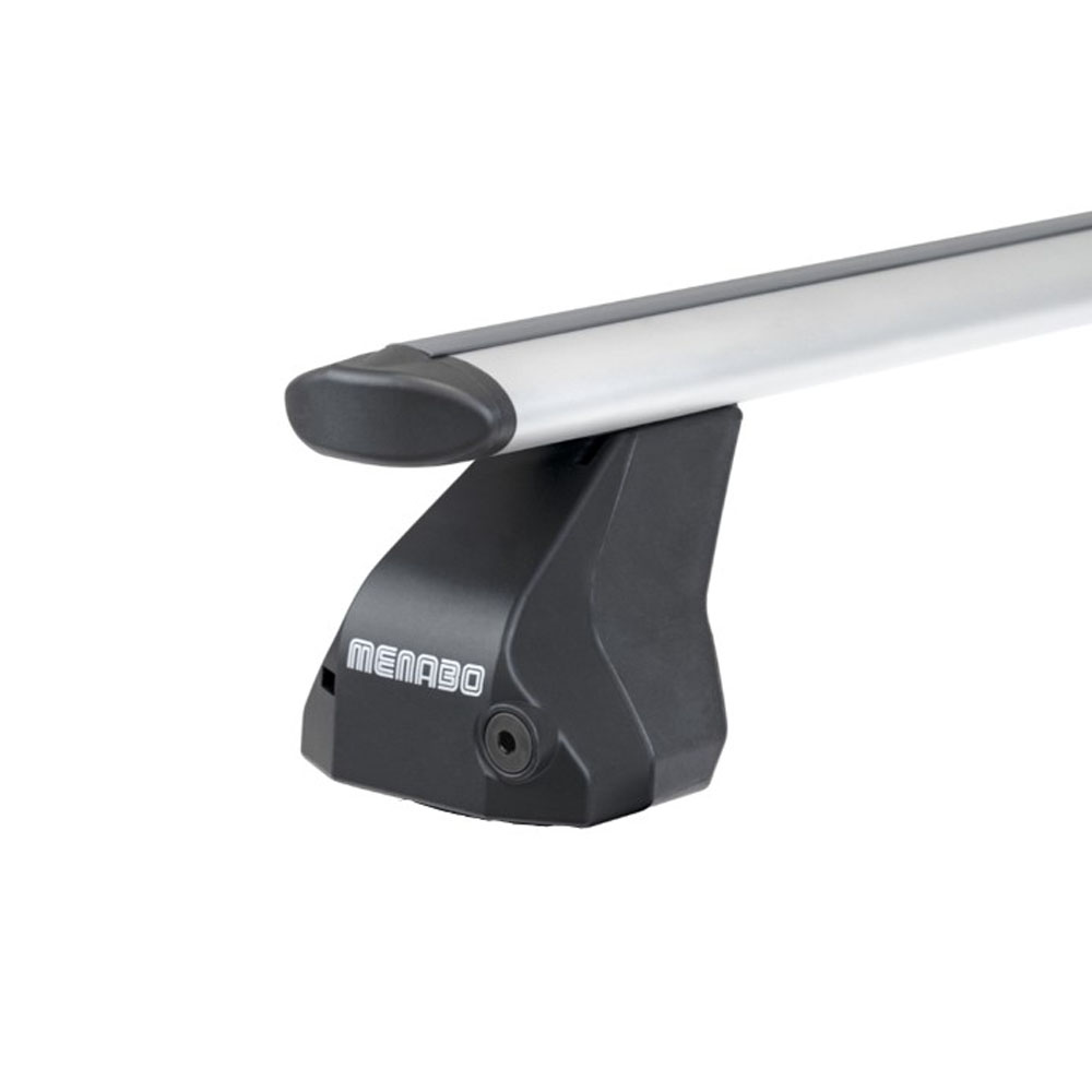Mπάρες οροφής της σειράς OMEGA PLUS από τον οίκο MENABO, 100% ιταλικής προέλευσης, σχεδιασμού και κατασκευής από υψηλής ποιότητας ανοδιωμένο αλουμίνιο σε ασημί χρώμα με μαύρες λεπτομέρειες. Οι μπάρες είναι ενισχυμένες εξωτερικά με πλαστικοποιημένο κάλυμμα PVC κατά μήκος τους, που προσφέρει ανθεκτικότητα στην διάρκεια του χρόνου και την έκθεση σε εξωτερικές καιρικές συνθήκες. Οι μπάρες OMEGA είναι συμβατές με οχήματα που διαθέτουν απλή οροφή: