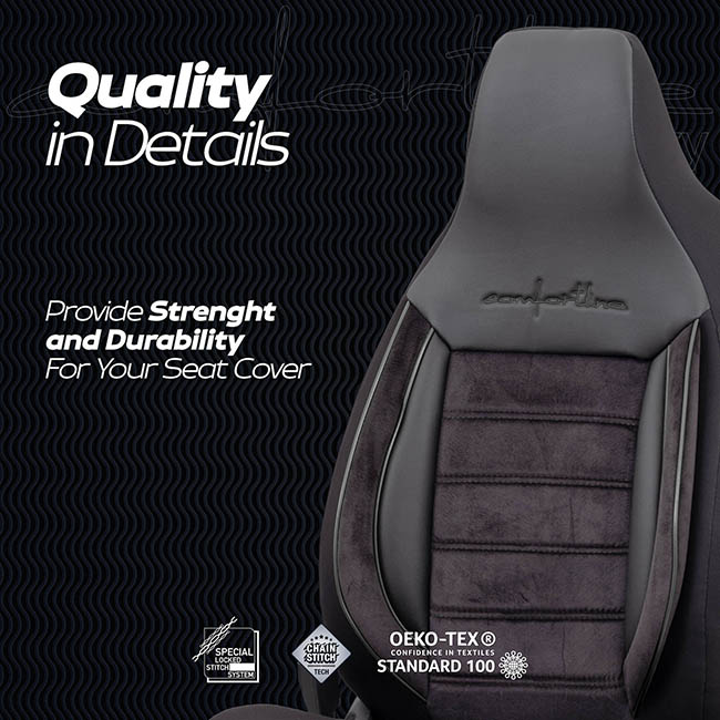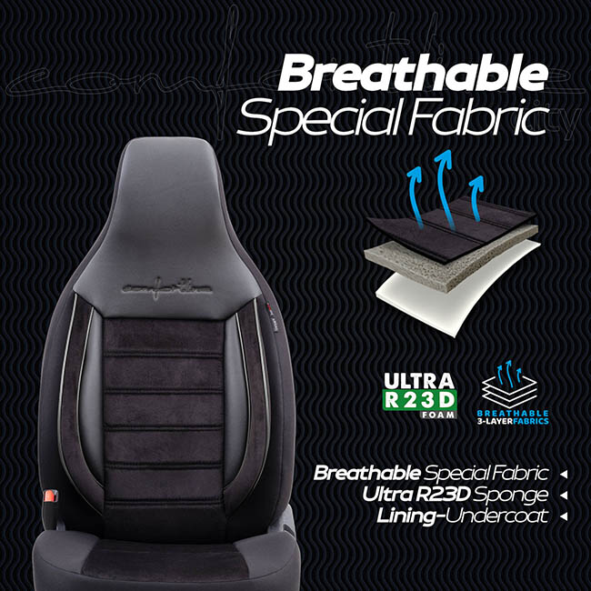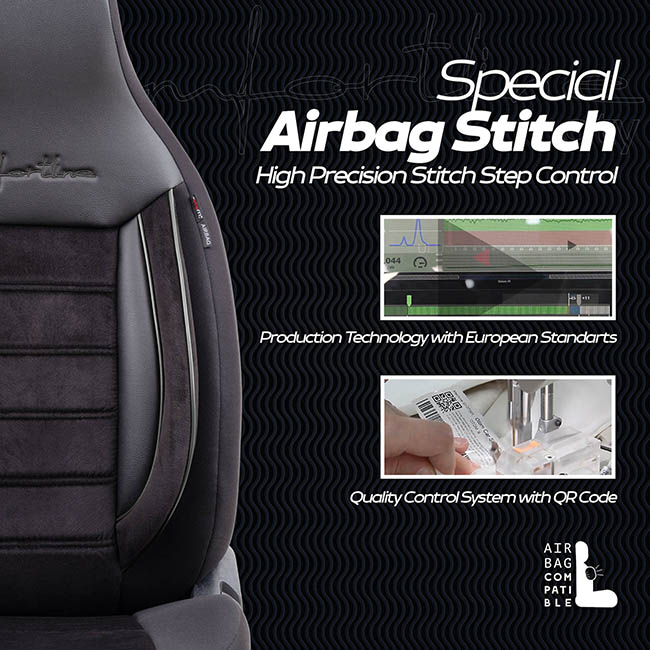 Special Airbag Stitch: Κατάλληλα για καθίσματα εξοπλισμένα με πλευρικούς αερόσακους, καθώς ακολουθούν τα Ευρωπαϊκά στάνταρ, για πιο ασφαλή οδήγηση.