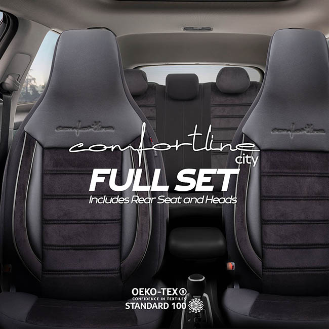 Καλύμματα Αυτοκινήτου Otom Comfortline City Design Universal Sued / Rachel / Δερματίνη Σετ Εμπρός / Πίσω Με Ενσωματωμένα Προσκέφαλα Μαύρο CMF-209CTY 11 Τεμαχίων