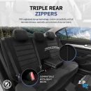 Zip-up Tech: Διαθέτει 3 φερμουάρ ώστε να προσαρμόζεται στα πίσω καθίσματα είτε είναι διαιρούμενα 60-40 είτε 40-60 είτε 50-50.