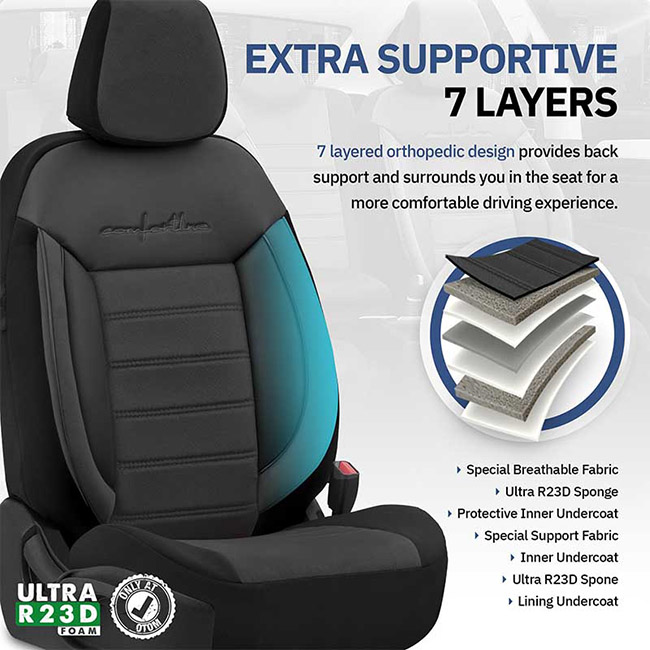 Extra Supportive 7 Layers: Ορθοπεδικός σχεδιασμός 7 στρώσεων στα πλαϊνά ώστε να παρέχεται στήριξη στην πλάτη και τη μέση. Προλαμβάνει τον πόνο και αυξάνει την οδηγική άνεση.