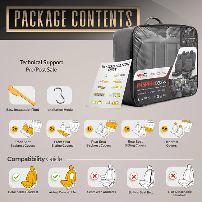 Καλύμματα Αυτοκινήτου Otom Inspire Design Universal Full Δερματίνη Σετ Εμπρός / Πίσω Μαύρο INS-3501 11 Τεμάχια ×
