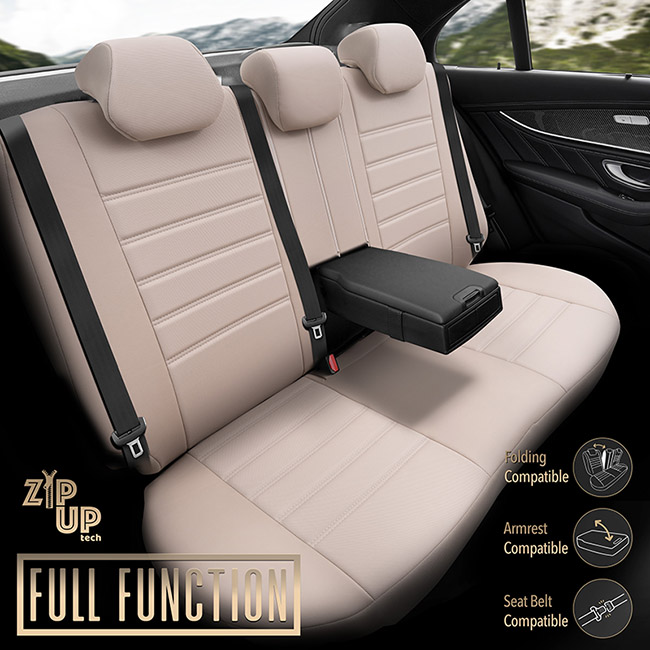 Zip-up Tech: Διαθέτει 3 φερμουάρ ώστε να προσαρμόζεται στα πίσω καθίσματα είτε είναι διαιρούμενα 60-40, είτε 40-60, είτε 50-50.