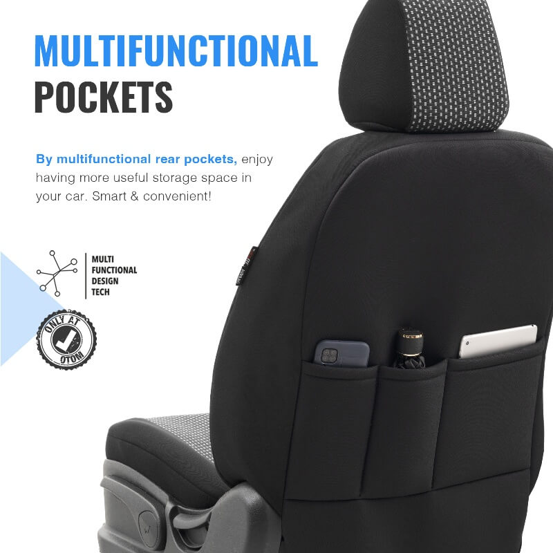 Multi Functional Pockets : Οι πλάτες των μπροστινών καλυμμάτων είναι εφοδιασμένες με θήκες για αποθήκευση των προσωπικών σας αντικειμένων κατά την διαδρομή.