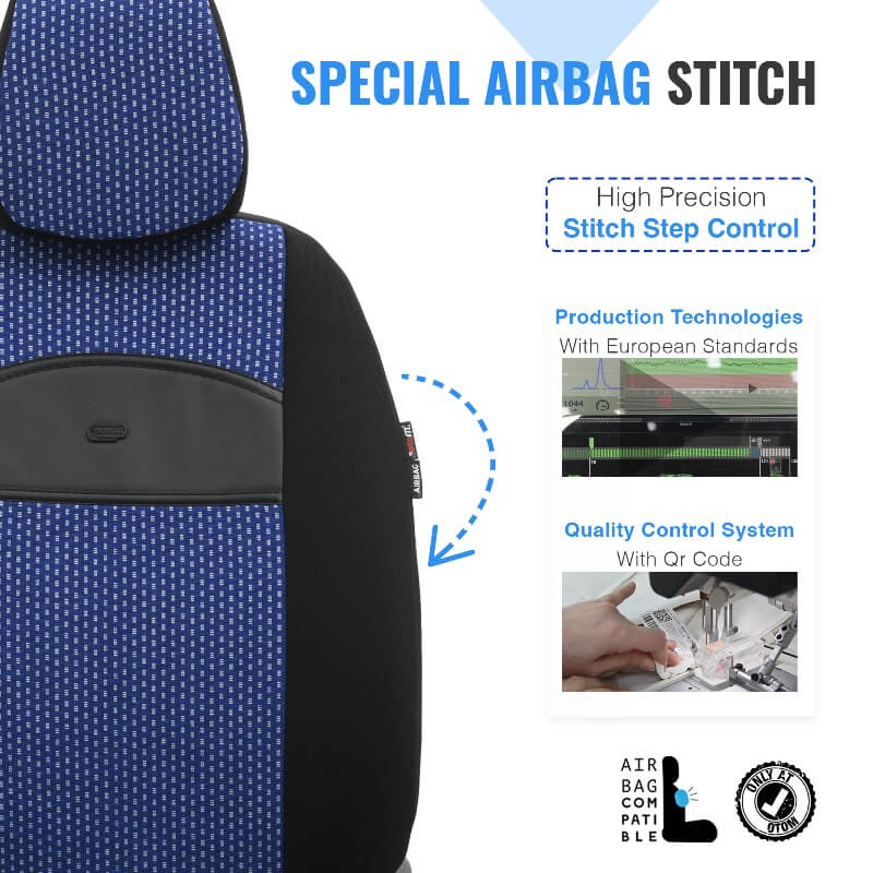 Καλύμματα Αυτοκινήτου Otom Smart Design Universal Ύφασμα / Δερματίνη Σετ Εμπρός / Πίσω 11 Τεμαχίων Μαύρο / Μπλε SLTSMT104-NZ