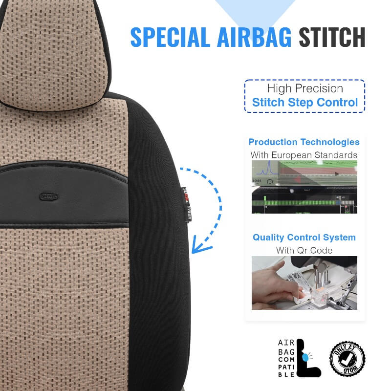 Καλύμματα Αυτοκινήτου Otom Smart Design Universal Ύφασμα / Δερματίνη Σετ Εμπρός / Πίσω 11 Τεμαχίων Μαύρο / Μπεζ SLTSMT106-NZ