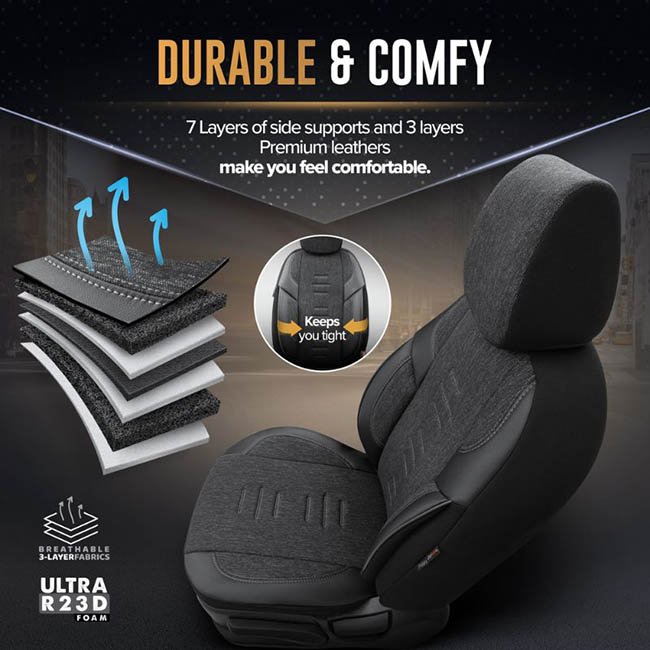 Special Airbag Stitch: Κατάλληλα για καθίσματα εξοπλισμένα με πλευρικούς αερόσακους, καθώς ακολουθούν τα ευρωπαϊκά στάνταρ, για πιο ασφαλή οδήγηση.