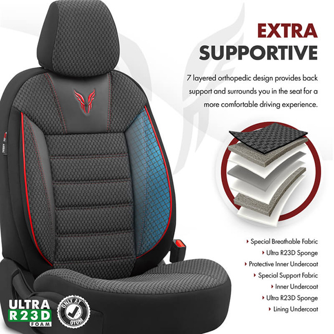 Extra Supportive 7 Layers: Ορθοπεδικός σχεδιασμός 7 στρώσεων στα πλαϊνά ώστε να παρέχεται στήριξη στην πλάτη και τη μέση. Προλαμβάνει τον πόνο και αυξάνει την οδηγική άνεση.