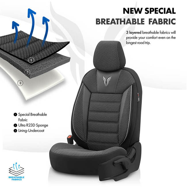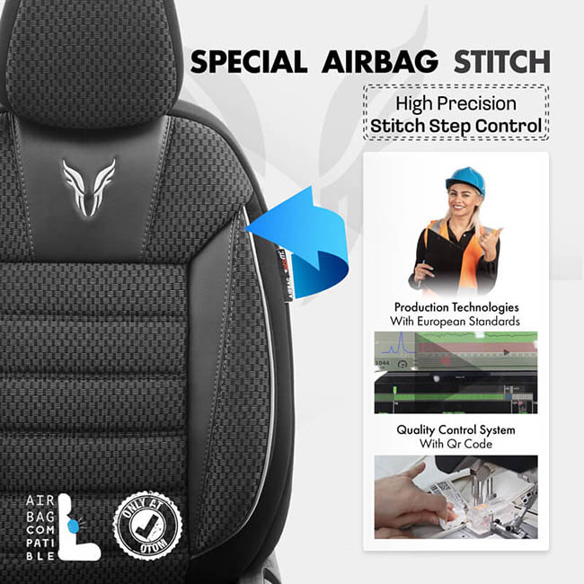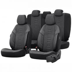 Καλύμματα Αυτοκινήτου Otom Toro Design Universal Βαμβακερό Ύφασμα / Δερματίνη Σετ Εμπρός / Πίσω 11 Τεμαχίων Μαύρο / Γκρι ΤRΟ-902