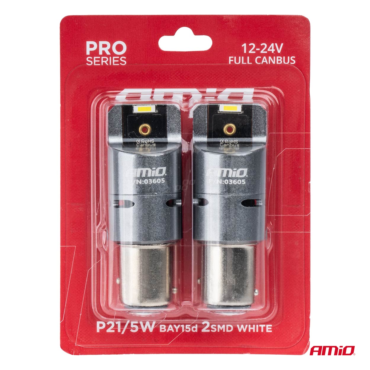 P21/5W BAY15s 12/24V 6.000K 2xSMD LED(ΜΕ ΑΝΕΜΙΣΤΗΡΑΚΙ) FULL CAN-BUS ΛΕΥΚΟ PRO SERIES AMIO - 2 Τεμ.