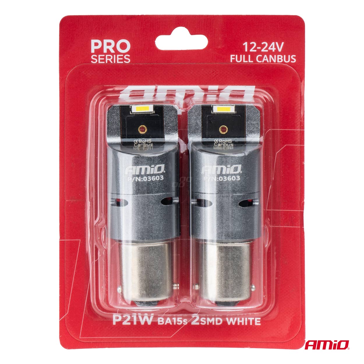ΛΑΜΠΕΣ P21W BA15S 12/24V 6.000K 2xSMD LED FULL CAN-BUS (ΜΕ ΑΝΕΜΙΣΤΗΡΑΚΙ) ΛΕΥΚΟ PRO SERIES AMIO - 2 ΤΕΜ.