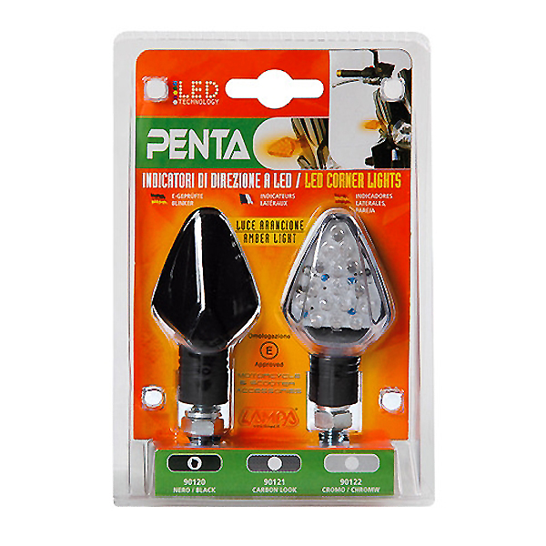 Φλας μοτο Penta 12v-21w με Led και λευκό καθρέπτη (Μαύρο). Eύκολα στην σύνδεση. Συσκευασία 2 τεμαχίων. Διαστάσεις: Mήκος 67mm- Ύψος 35mm. Εγκεκριμένο, Τύπου Ε.