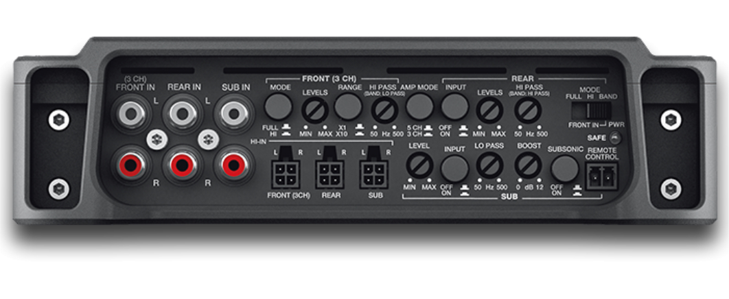 5 Ch 65 W x 4 + 200 W x 1 (4Ω) 5 Ch 105 W x 4 + 330 W x 1 (2Ω) 3 Ch 210 W x 2 (4Ω) + 200 W x 1 (4Ω) 3 Ch 210 W x 2 (4 Ω) + 330 W x 1 (2 Ω) |