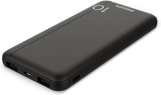 Philips DLP1810CB/GRS Power Bank, χωρητικότητας 10.000 mAh. Διαθέτει 2 θύρες USB-A και USB-C. Το σχέδιο του είναι λεπτό και κομψό. Χρώμα: Μαύρο.