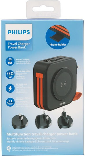 Philips DLP4347CB/GRS Μαύρο Power bank ταξιδιού με ασύρματη επαγωγική φόρτιση.
